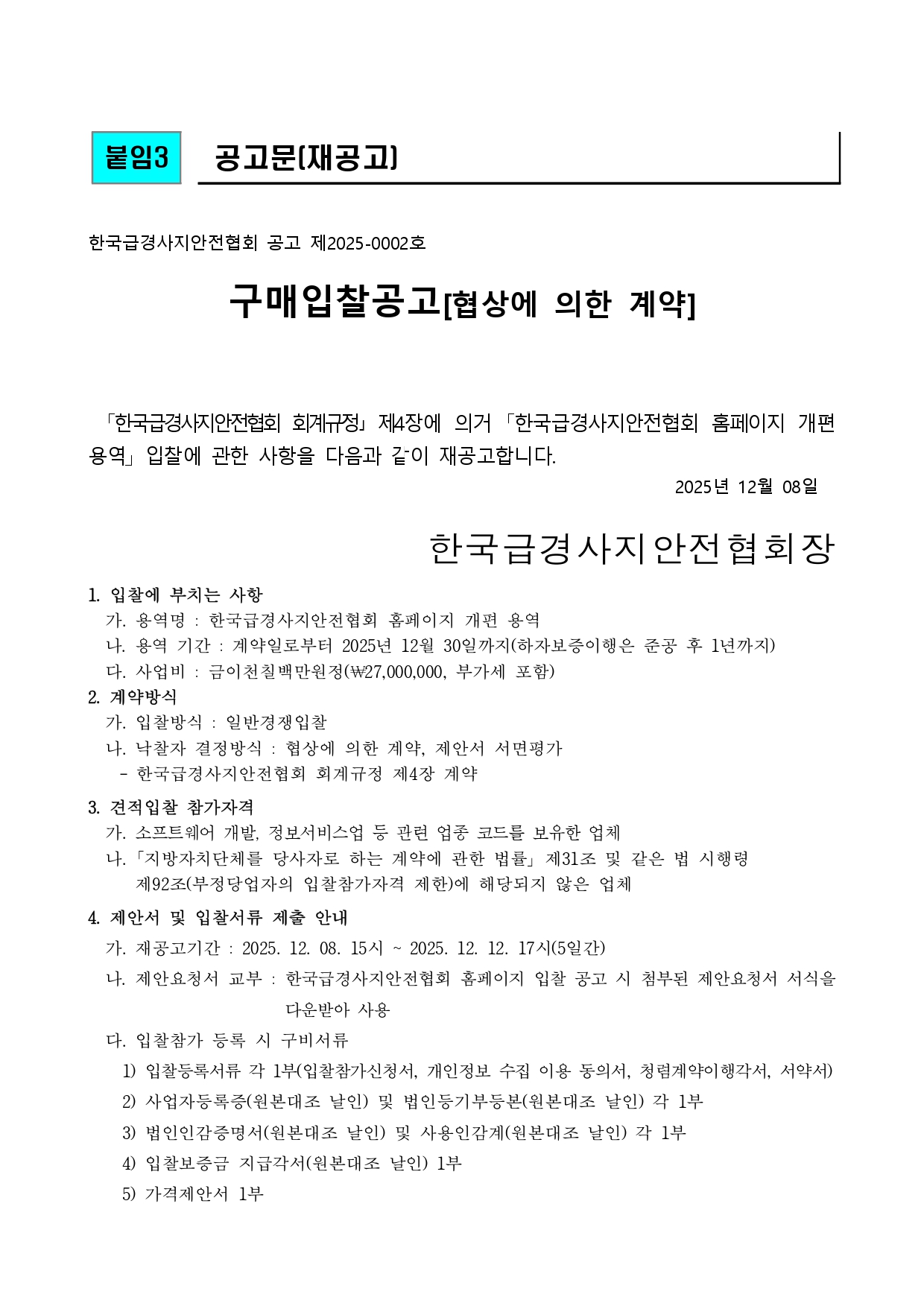 Çѱ¹±Þ°æ»çÁö¾ÈÀüÇùȸ ȨÆäÀÌÁö °³Æí ¿ë¿ª ÀÔÂû Àç°ø°í